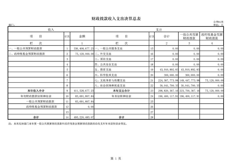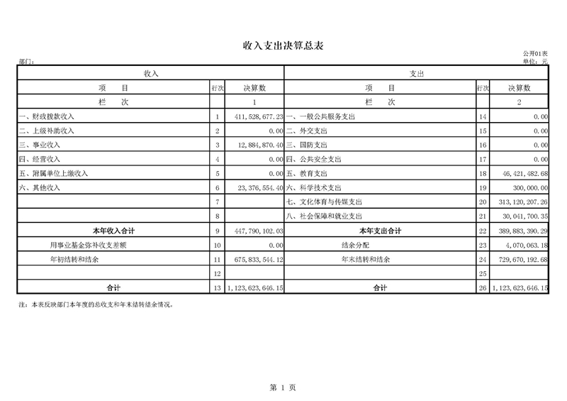 2015年全年收入44779.01万元, 与2014年40135.20万元相比增加4643.81万元,增加11.57%。2015年全年支出38988.34万元,与2014年37516.40万元相比增加1471.94万元,增加3.92%。
