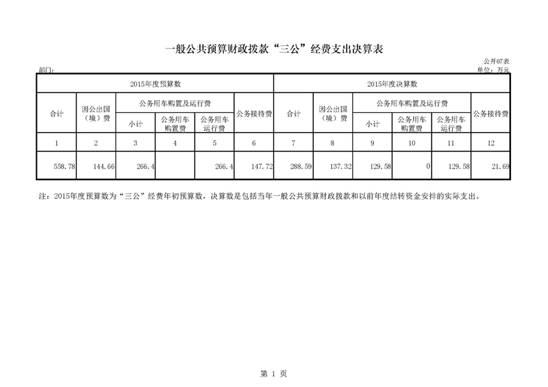 注:1. “三公”经费指因公出国(境)费、公务用车购置及运行维护费和公务接待费,“三公”经费决算数包括当年一般公共预算财政拨款和以前年度结转资金安排的实际支出。