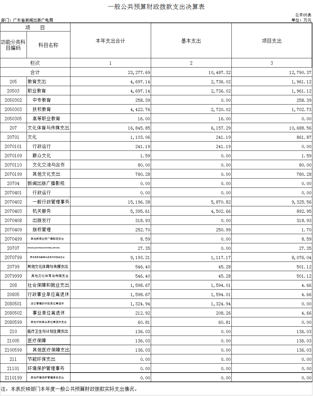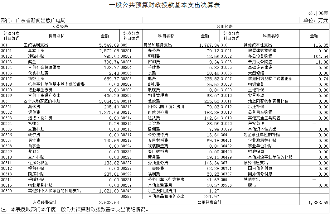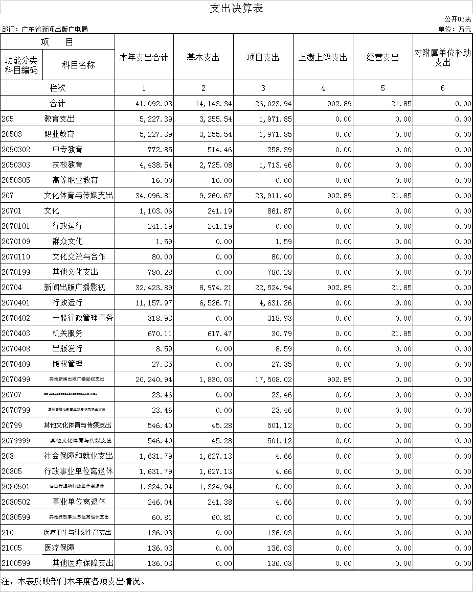 的该指标由财政直接调减。决算支出比预算支出增加,主要是局下属单位技工学校印刷系为适应为提高教学质量及培养社会所需的人才,增加了实习场地和设备投入;下属单位监听监看中心根据要求上缴境外电视监管经费,从而决算支出比预算支出增加。