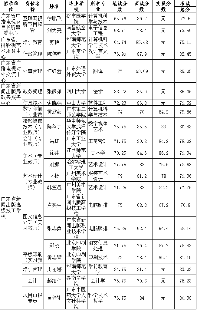 根据《广东省事业单位公开招聘人员办法》(粤府令第139号)和《广东省新闻出版广电局所属事业单位2016年公开招聘工作人员公告》的有关规定,经过笔试、面试、体检、考察等程序,徐鹏飞等21名同志为彩票预测